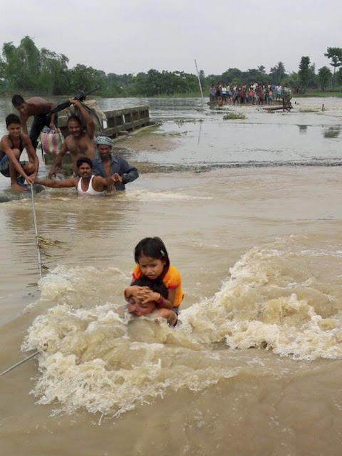 Thousands forced to flee their homes and take shelter on high rise embankments, national highways, railway lines, in schools and other buildings including relief camps set up by the state government, officials said.