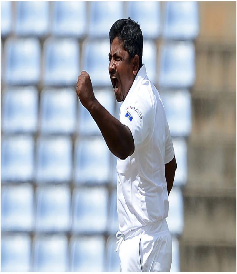 The left-arm spinner dismissed Adam Voges, Peter Nevill and Mitchell Starc off successive deliveries to achieve the feat in the second match of the three-Test series at Galle as the visitors folded for 106 in 33.2 overs, their lowest score against Sri Lanka, who grabbed a 175-run first innings lead. Former pacemanNuwanZoysa was the first Sri Lankan to claim a Test hat-trick, against Zimbabwe in a 1999 match at Harare.
