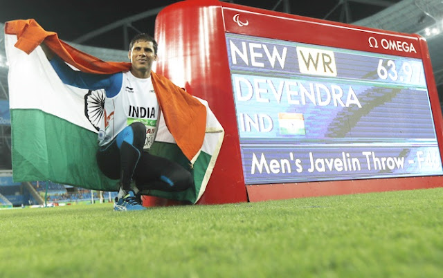 Devendra's World record throw of 63.97 metres came in his third attempt; it bettered his own mark of 62.15 metres, which won him his maiden gold at the Athens Paralympics in 2004.