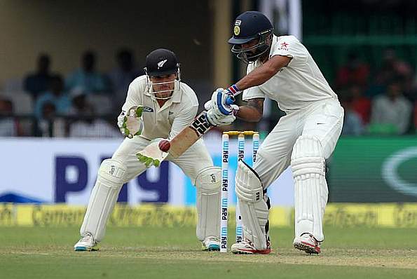 Murali Vijay and Cheteshwar Pujara joined forces to share a stand of 112 for the second wicket for India after KL Rahul departed for 32. However, the dismissal of Pujara for a well-measured 62, opened the door for New Zealand to chip away at the home team's middle order and end the day in ascendancy.