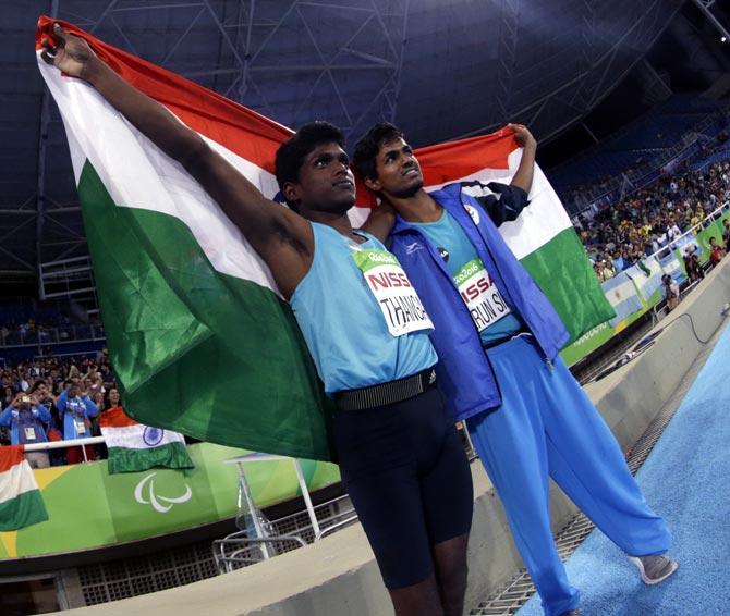 From Prime Minister Narendra Modi to India's lone individual Olympic gold-medallist Abhinav Bindra, congratulatory messages poured in from all corners for Rio Paralympic Games' T-42 high-jump gold-medallist Mariyappan Thangavelu and bronze medal winner Varun Bhati.