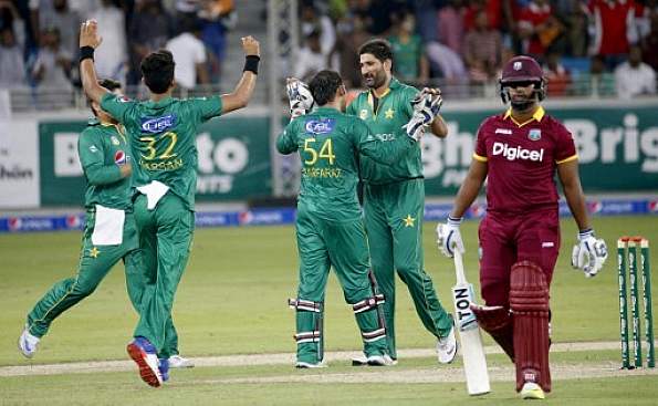 Brief Scores: Pakistan 160/4 in 20 overs (Sarfaraz Ahmed 46*, Khalid Latif 40; Samuel Badree 1-24, Carlos Brathwaite 1-24) beat West Indies 144/9 in 20 overs (Sunil Narine 30, Andre Fletcher 29*; Sohail Tanvir 3-13, Hasan Ali 3-49) by 16 runs