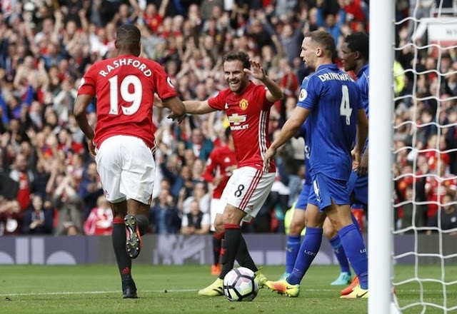 Paul Pogba scores his first ever goal for the Red Devils as Manchester United dominates Leicester City, 4-1.