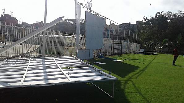 Just like the city that is getting back to routine, inside the ground too there is work going on frenetically to get it in shape on time. The cyclone damaged the sight-screen severely, both inside the ground and outside in the practice area. This has forced both teams to take a break on Wednesday. The Tamil Nadu Cricket Association (TNCA) had informed the respective teams that there will be no practice possible on Wednesday.